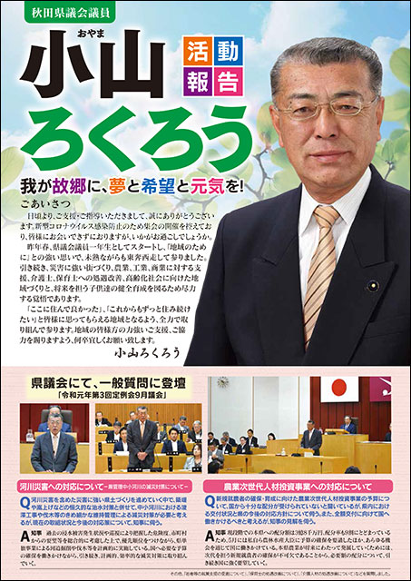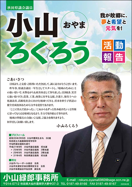 小山ろくろう(小山緑郎)より皆様へ--次世代につなげる強い秋田県を創設し、秋田県民の皆様とともに共創していきます。ぜひお読みください。